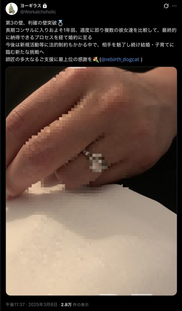 そのため、コンサルを通じて「自分は女性と関わらない方が幸せだ」と、コンサル生が心から感じ、犬猫もそのほうがいいと判断した場合は、それに沿った指導を行います。いわゆるMGTOWという生き方を、犬猫は否定しません。コンサル生が幸せになるために、全ての可能性を視野に入れます。